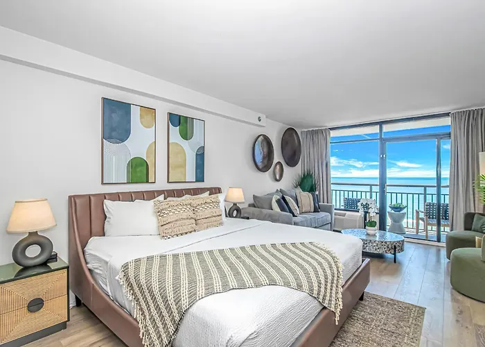 The 1-bedroom Breathtaking Luxury Beach Escape With Oceanfront Views-Landmark 731 Myrtle Beach villa is located merely 1.8 km from the Second Avenue Pier and provides guests with a sauna and an indoor pool for a more relaxing stay. Offering an indoor pool, the property invites guests to visit the Rockin' Jump Myrtle Beach Trampoline Park, located approximately a 10-minute drive away.